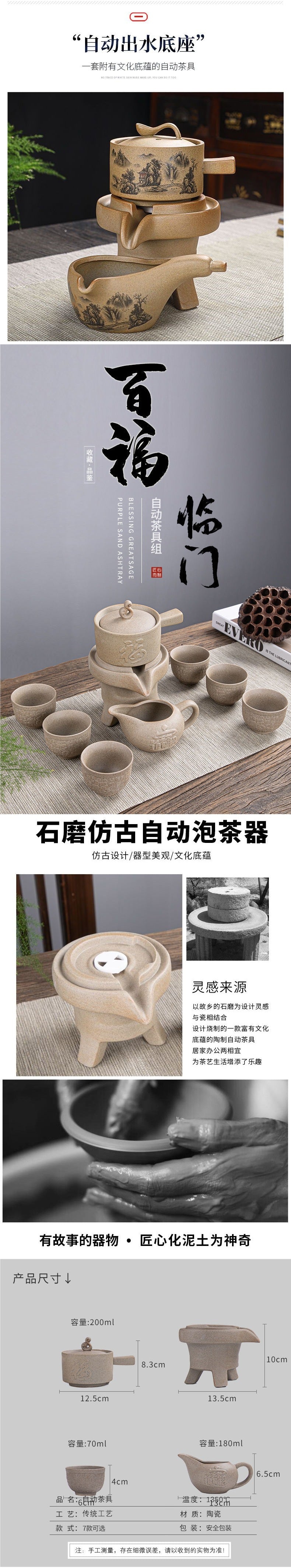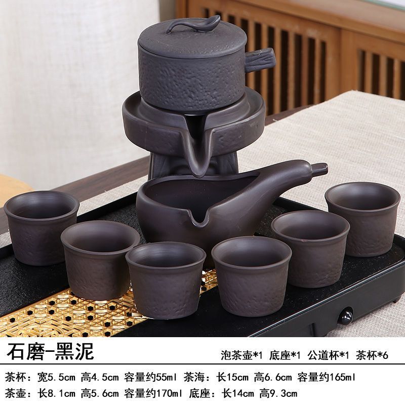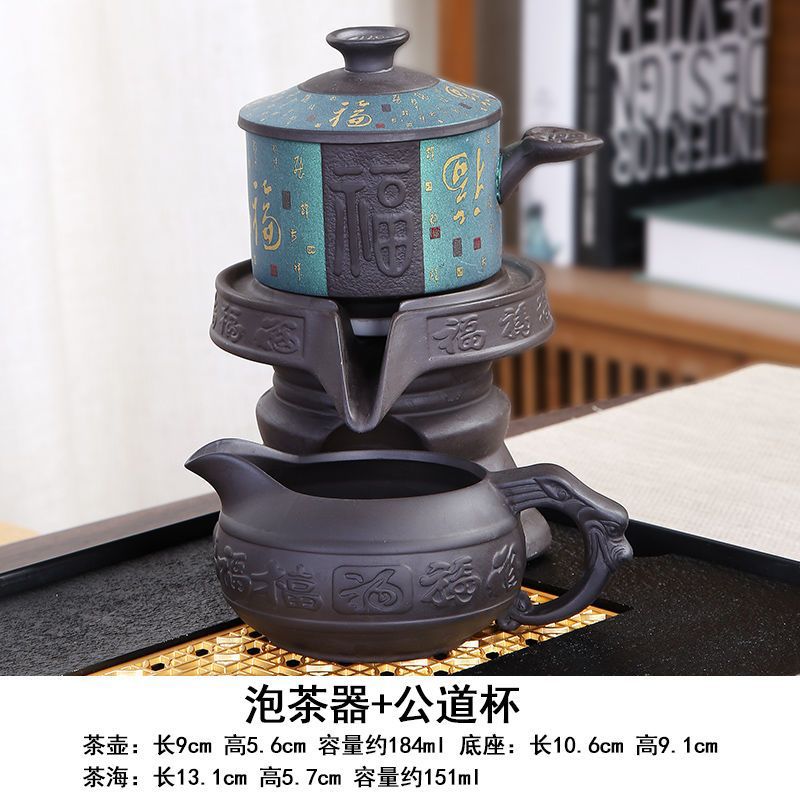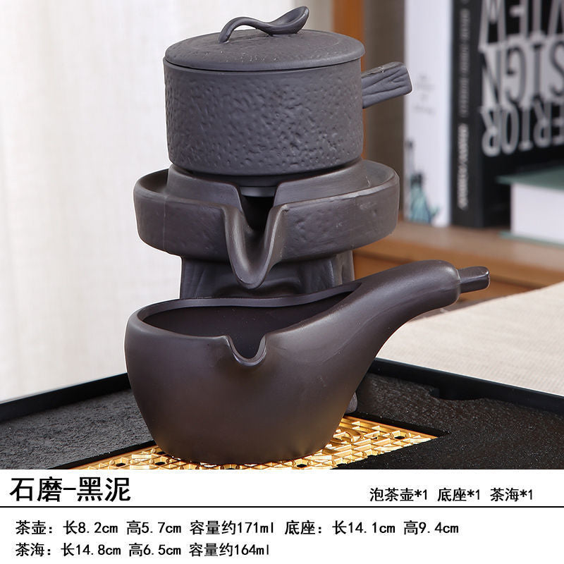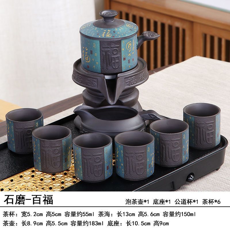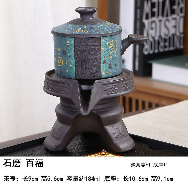 Teapot Semi-Automatic Stone Mill Kung Fu Tea Set Purple Clay Household Tea Brewer Simple Fortune Comes Lazy Person Brewing