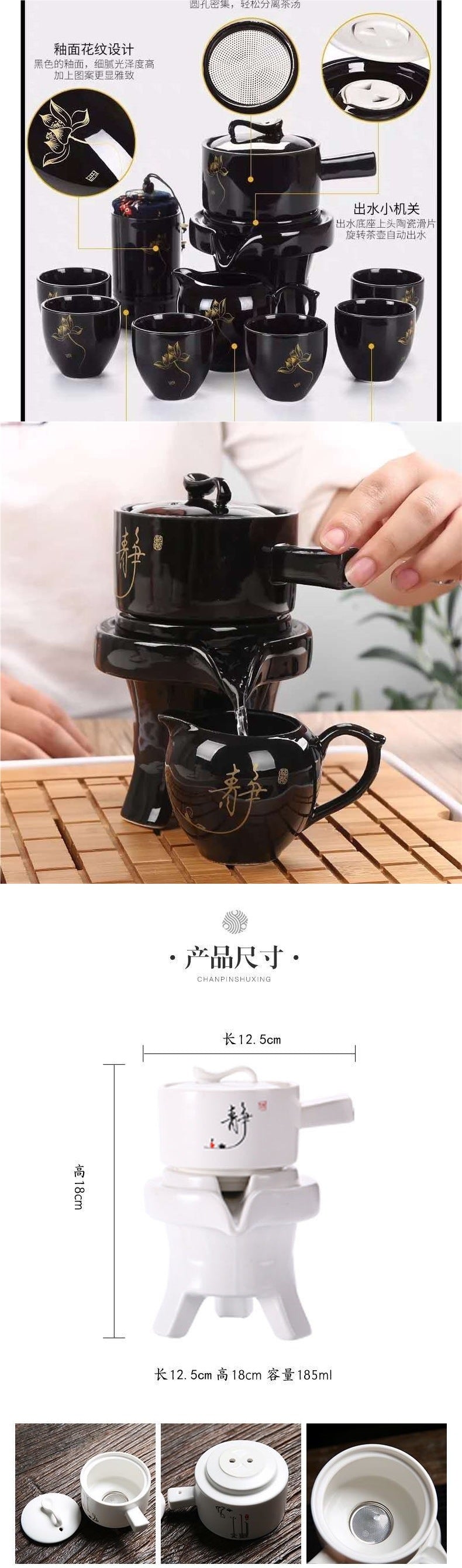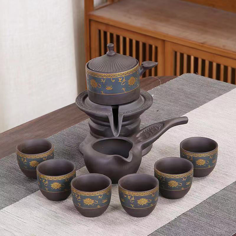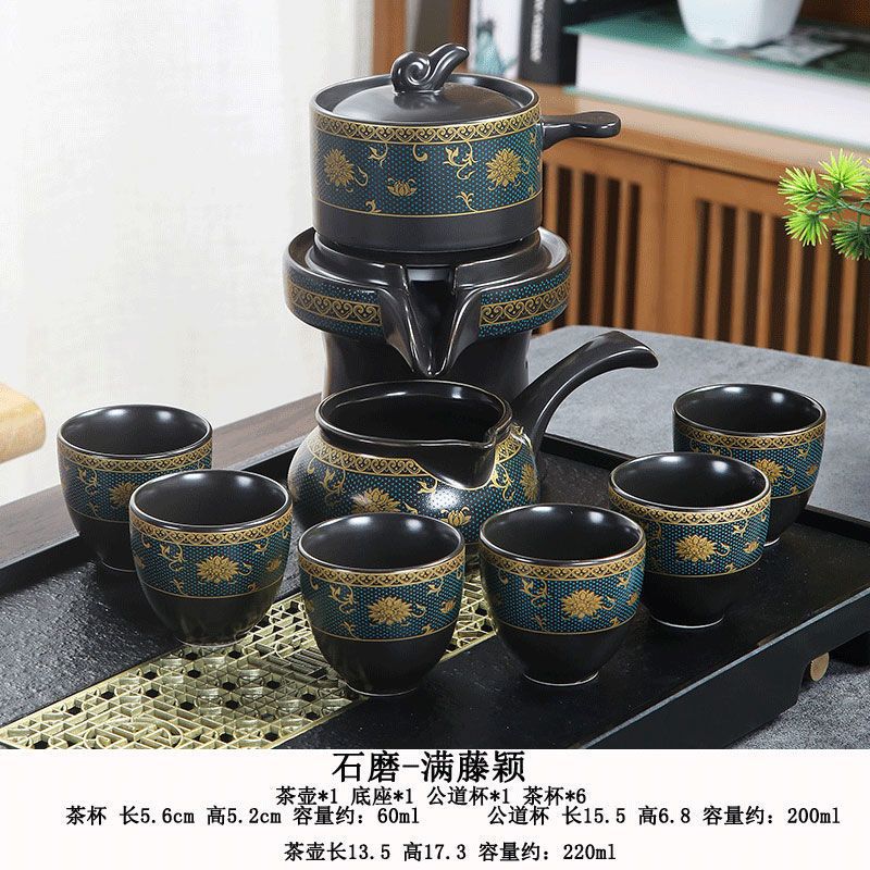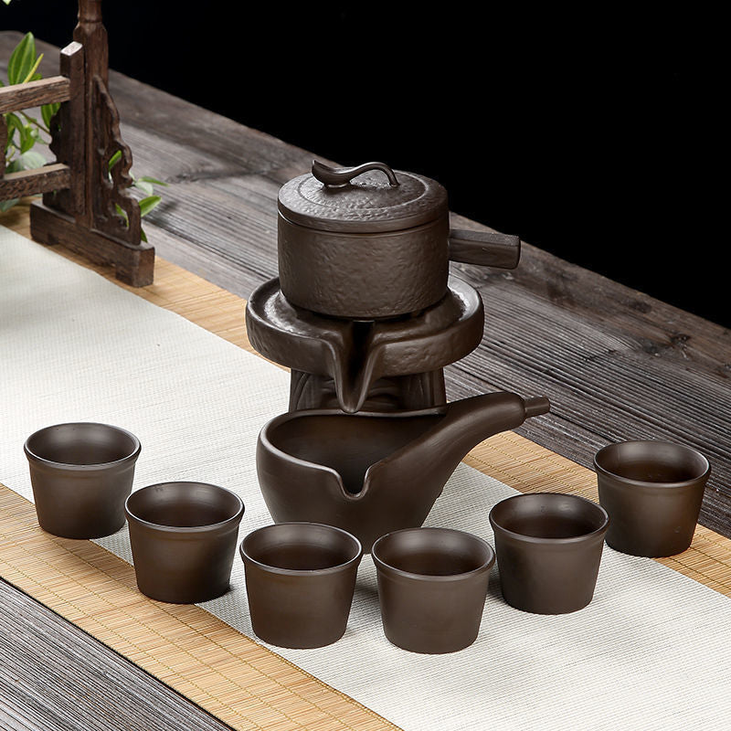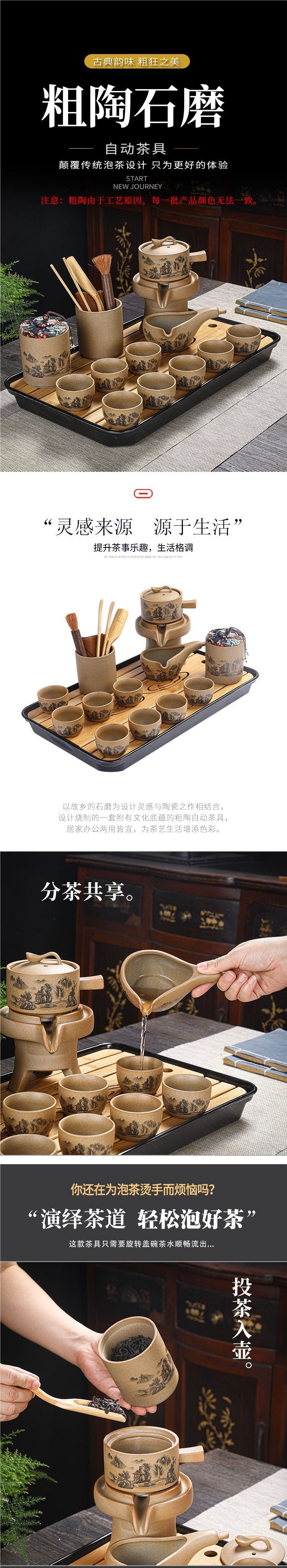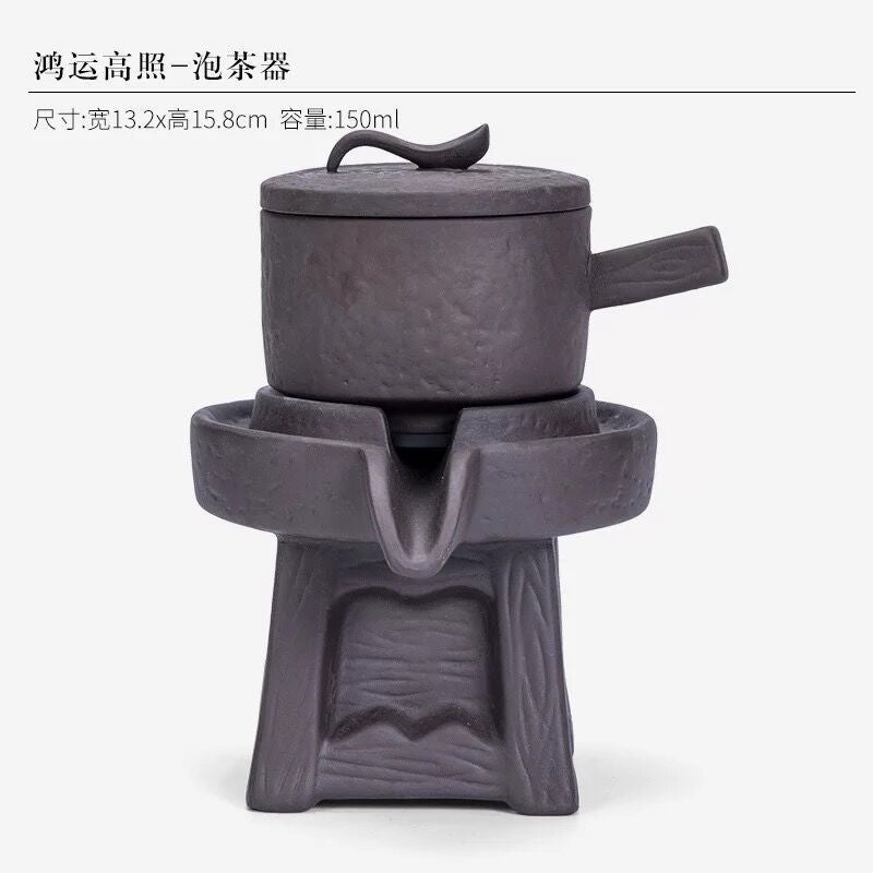 Teapot Semi-Automatic Stone Mill Kung Fu Tea Set Purple Clay Household Tea Brewer Simple Fortune Comes Lazy Person Brewing