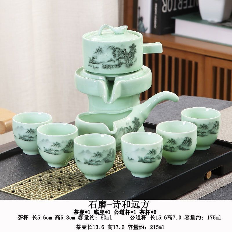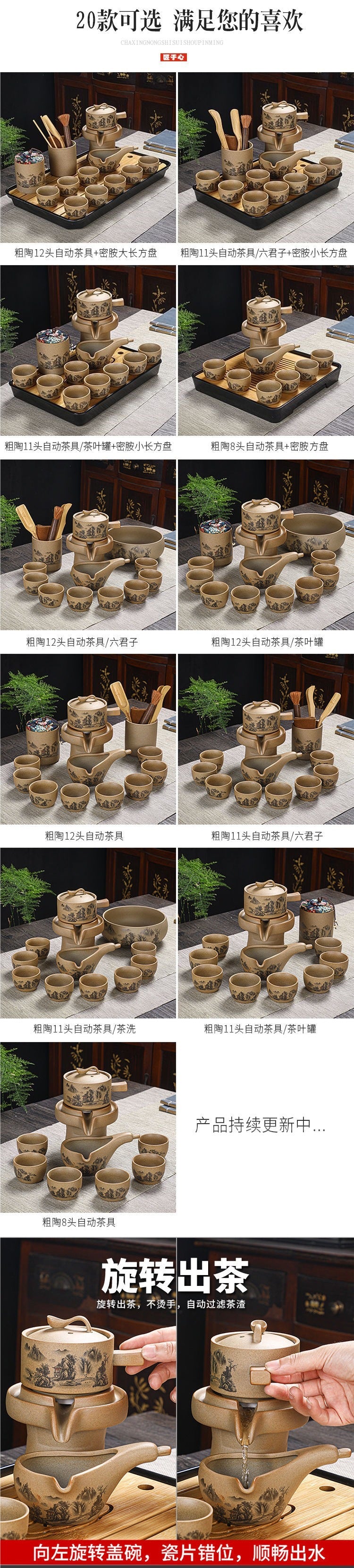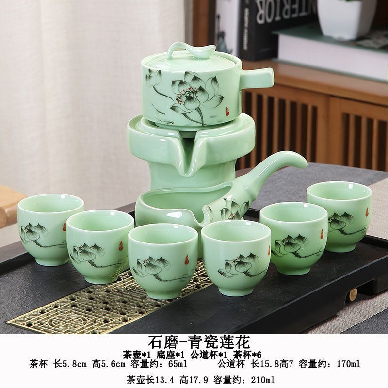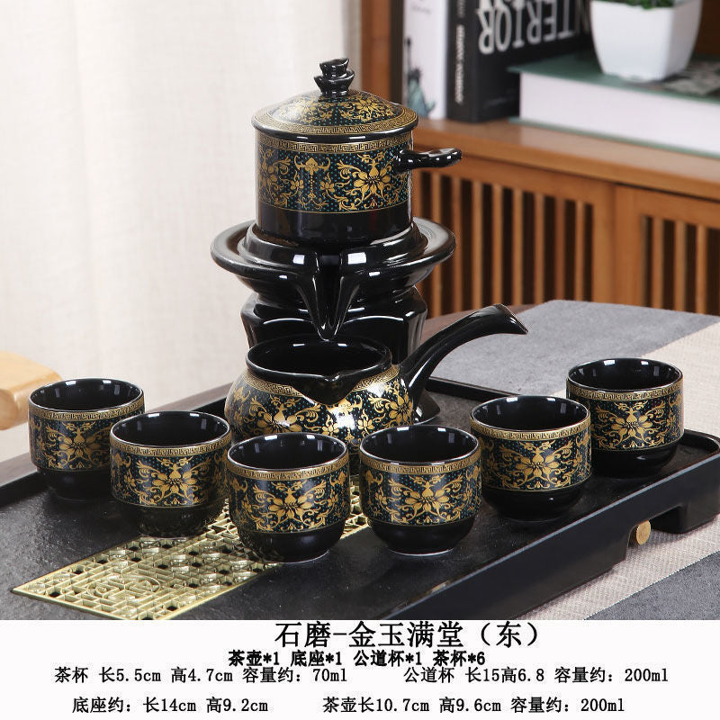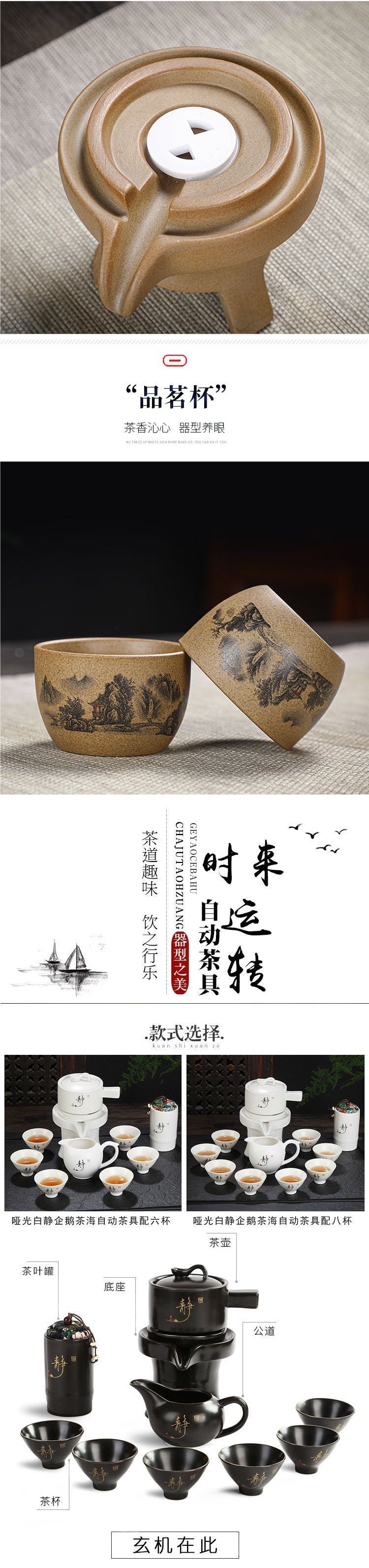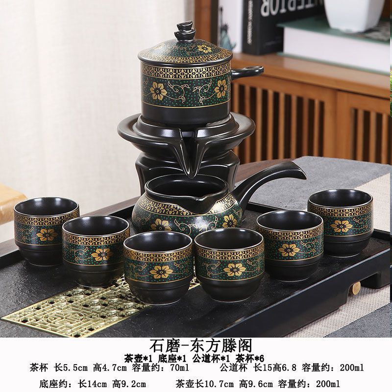 Teapot Semi-Automatic Stone Mill Kung Fu Tea Set Purple Clay Household Tea Brewer Simple Fortune Comes Lazy Person Brewing