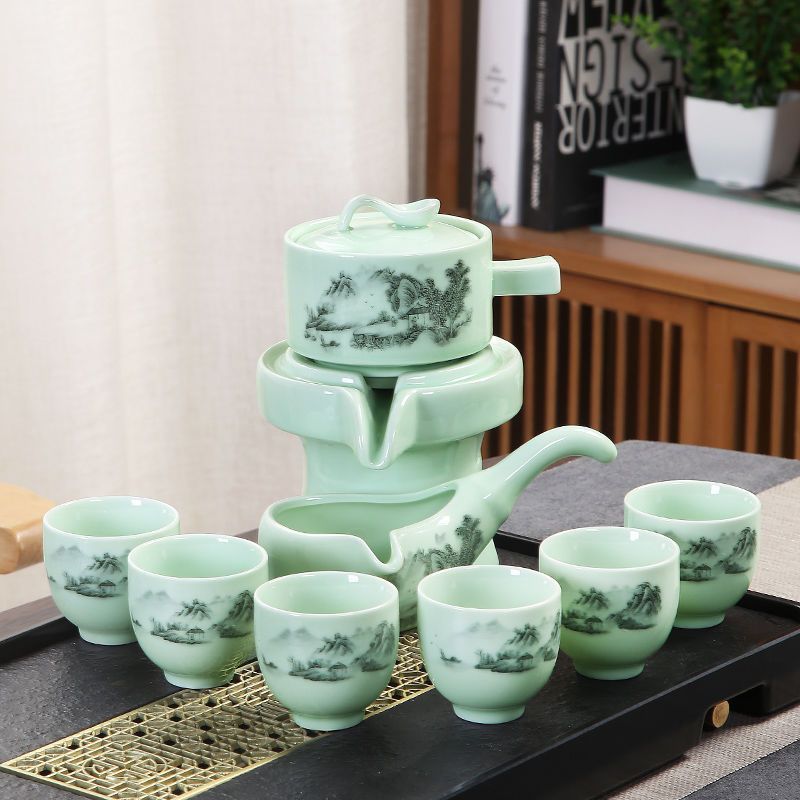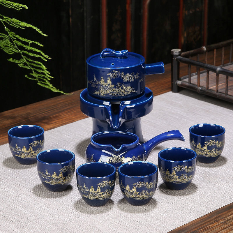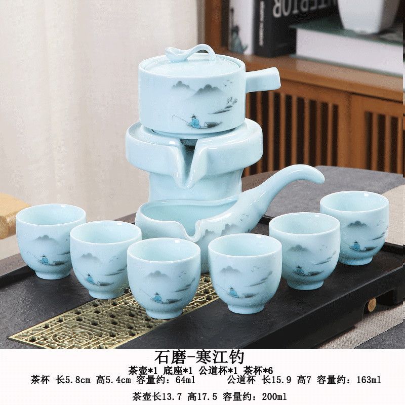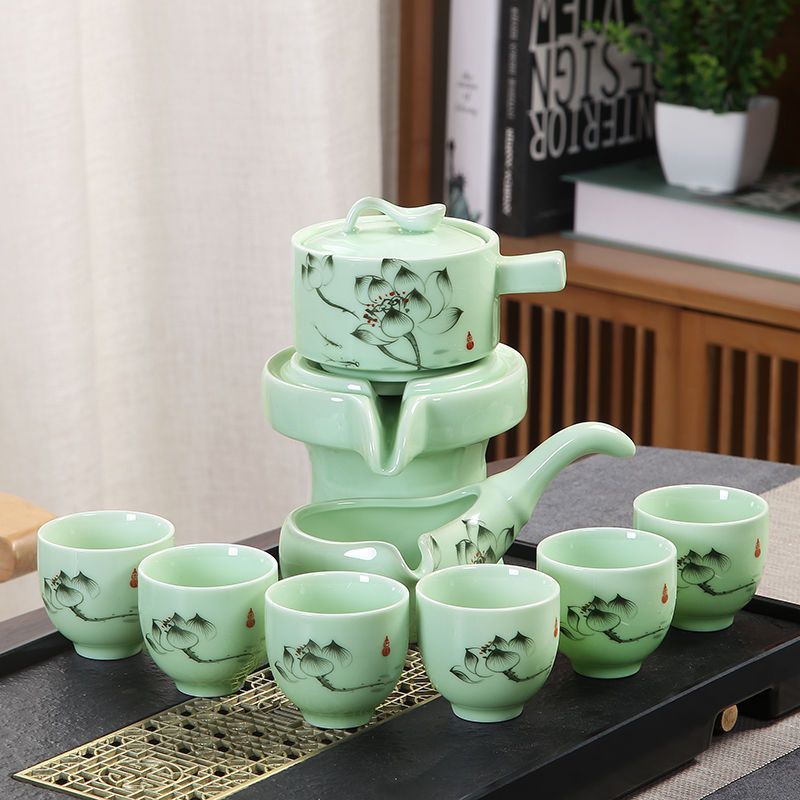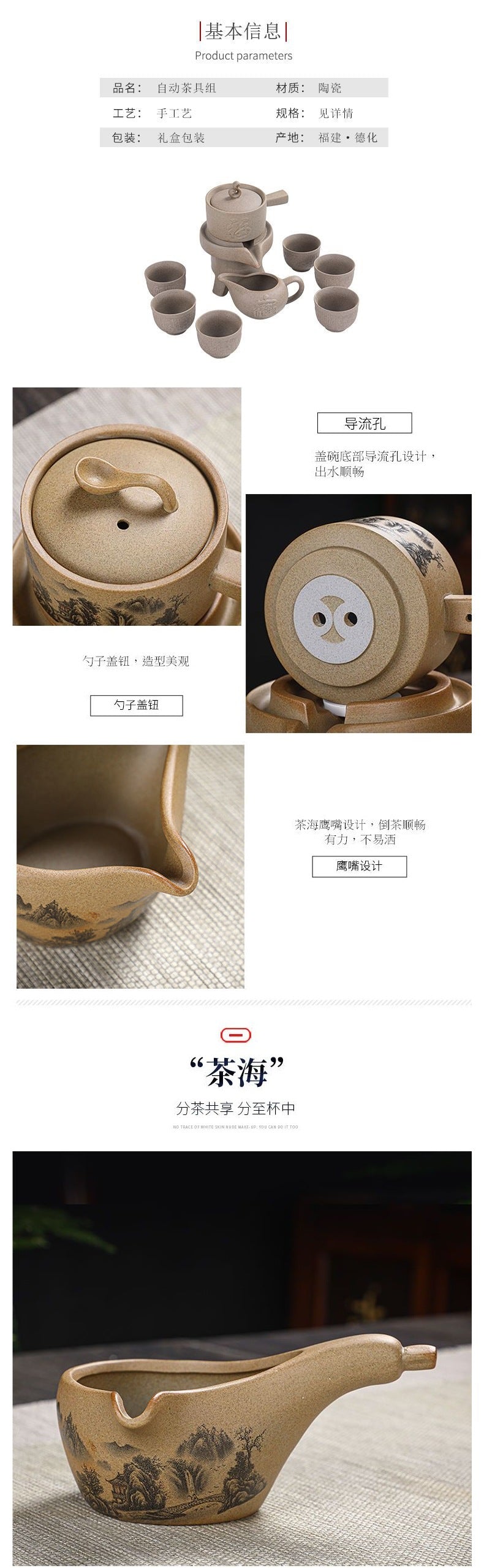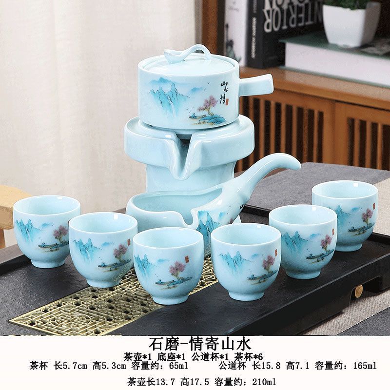 Teapot Semi-Automatic Stone Mill Kung Fu Tea Set Purple Clay Household Tea Brewer Simple Fortune Comes Lazy Person Brewing